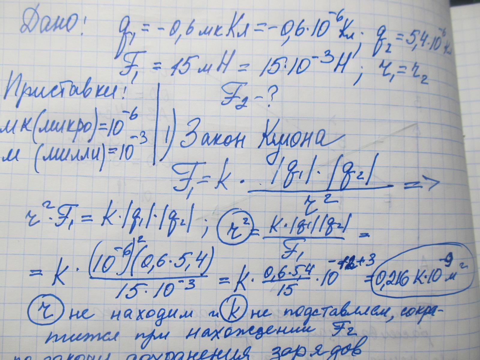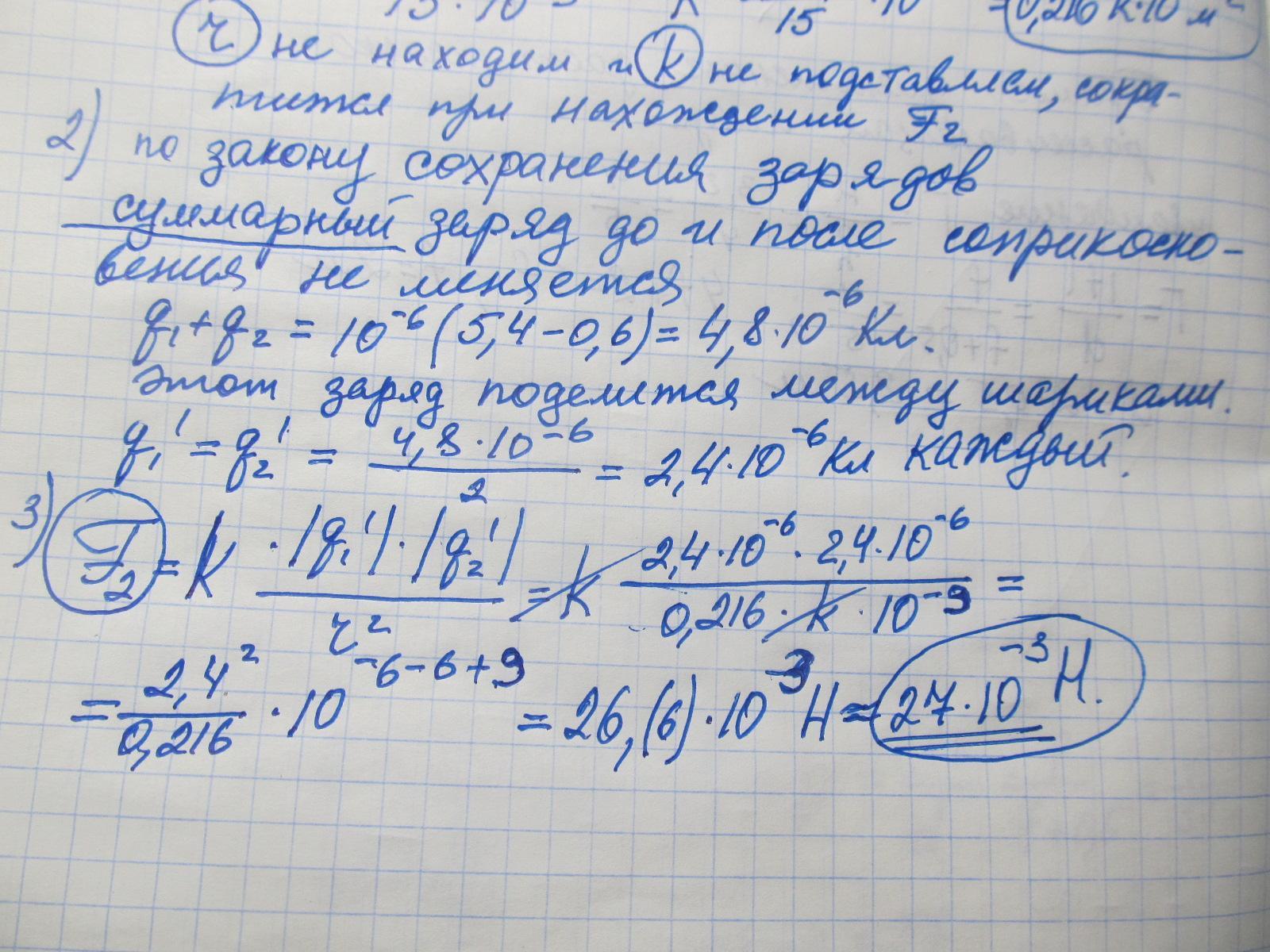 Дві кульки зарядами -0.6мкКл і 5.4мкКл взаємодіють із силою 15мН. Їх привели до зіткнення і розвели на таку саму відстань. Якою стала їх взаємодія?