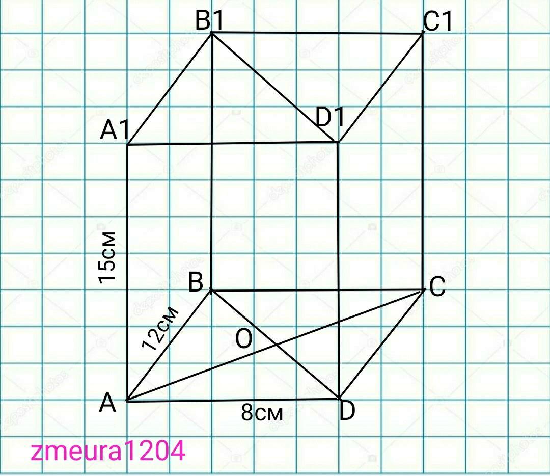 Основанием прямоугольного параллелепипеда является прямоугольник со сторонами 8см и 12см, высота параллелепипеда 15см