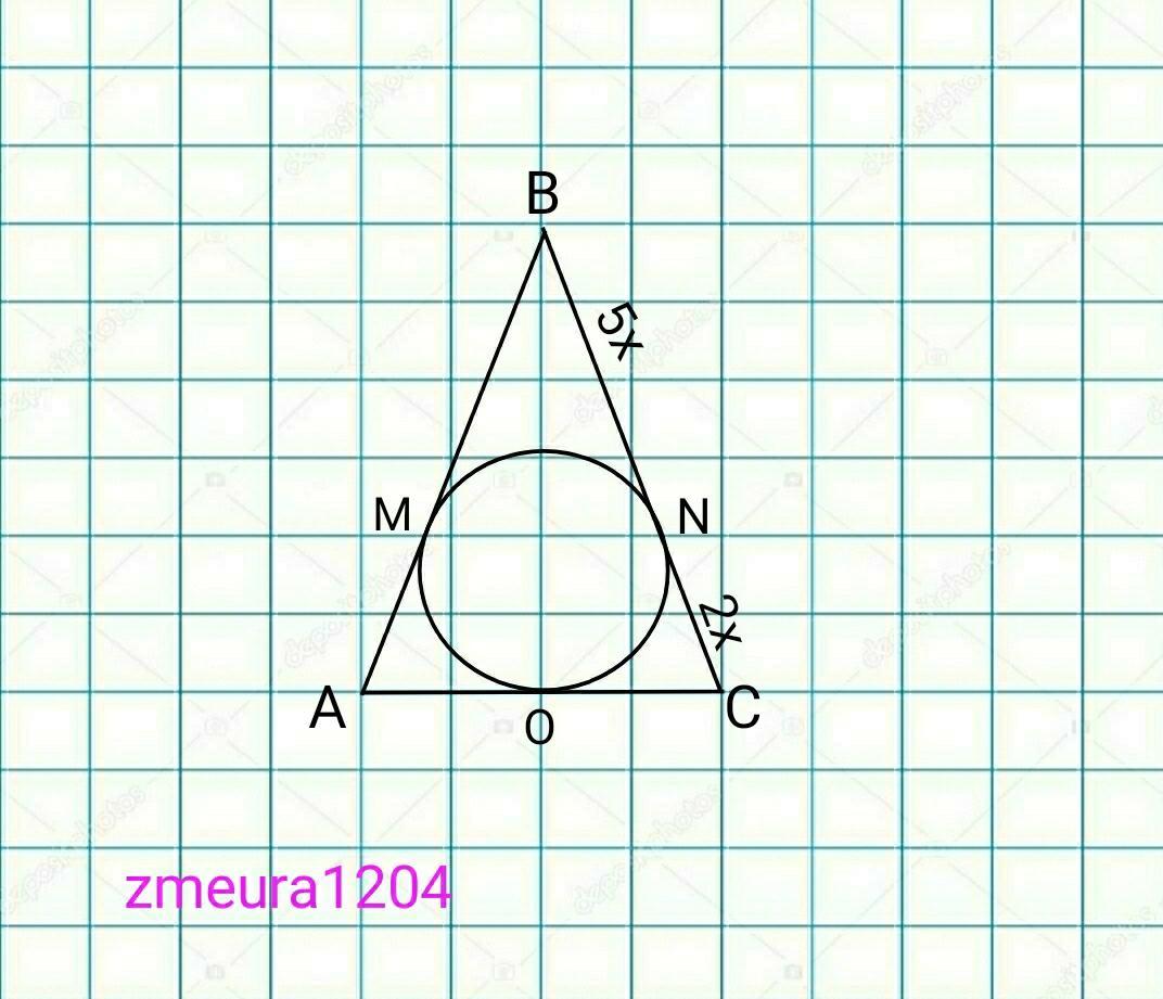 точка дотику вписана у рівнобедрений трикутник кола ділить бічну сторону на відрізки ,відношення яких дорівнює 5:2 ,рахуючи від вершини.знайти довжину основи ,якщо периметри трикутника дорівнює 36 см