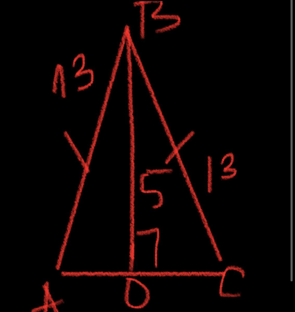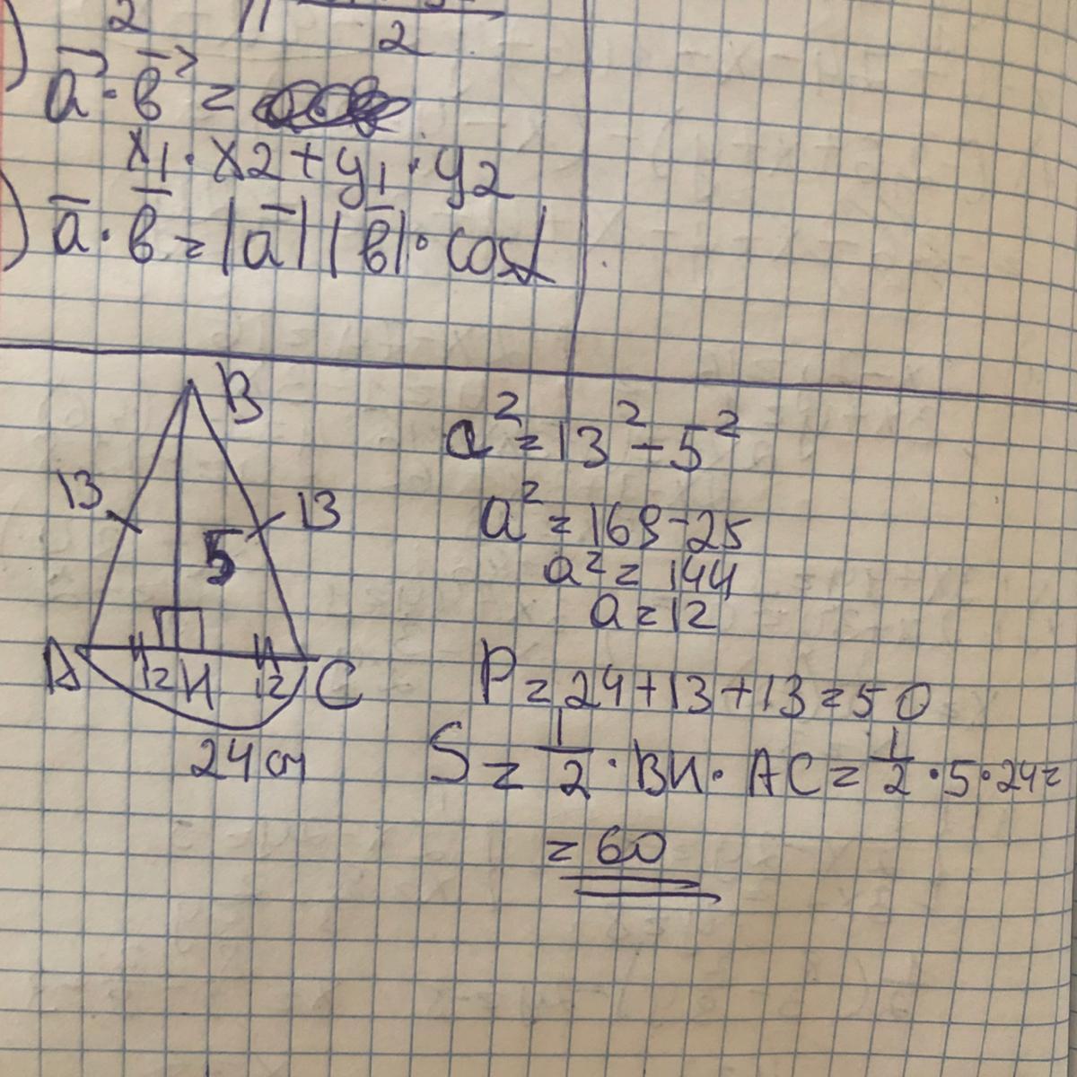 Боковая сторона равнобедренного треугольника равна 13 см а его медианы проведенным к основанию равна пяти найдите площадь треугольника