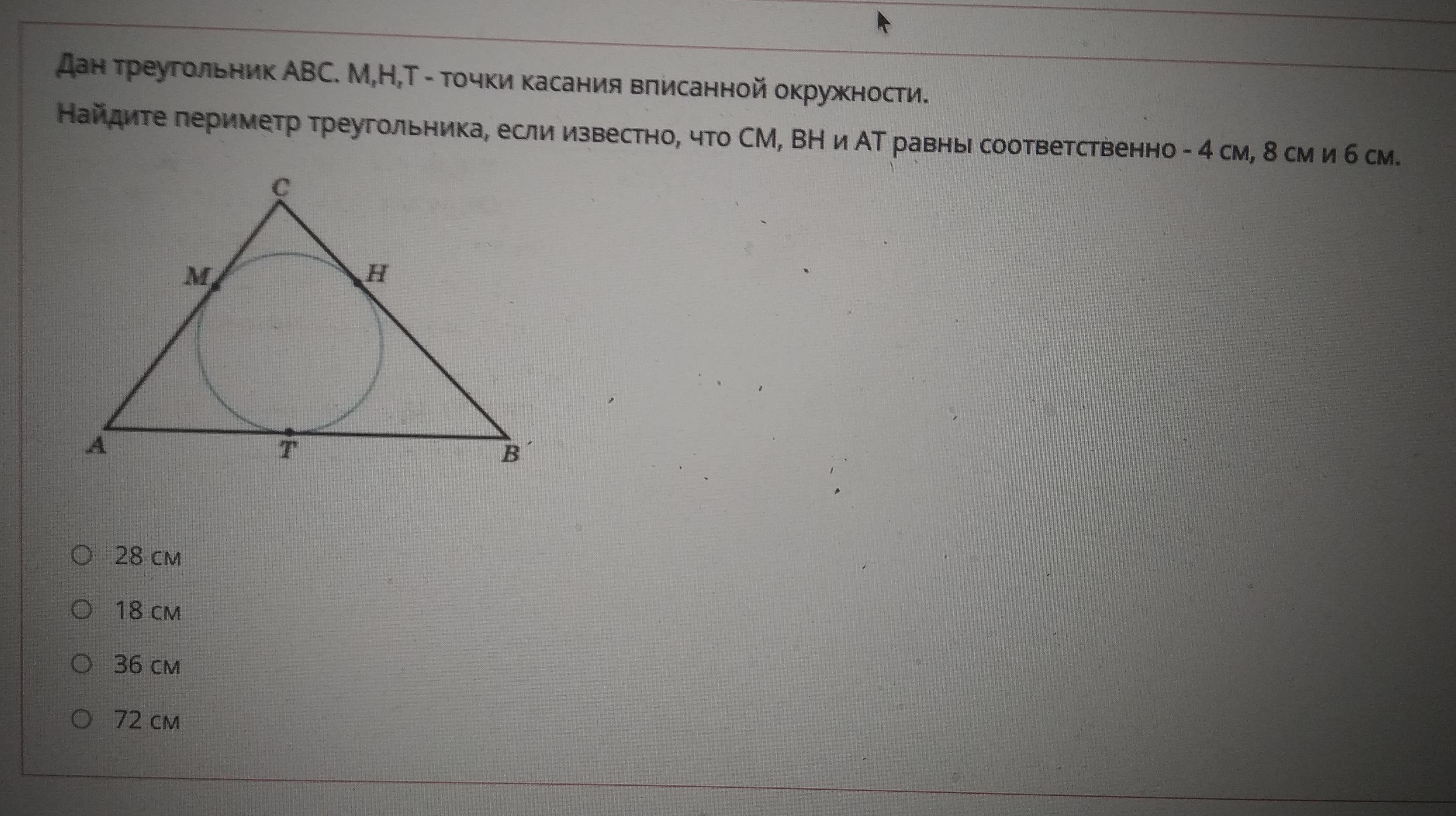 CB=4+8=12 см AB=6+8=14 см CA=4+6=10 см