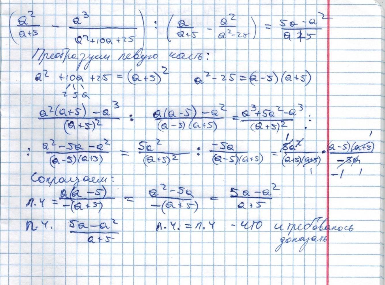 С помощью преобразований видоизменяем левую часть и приводим ее к виду правой части, тем самым доказываем тождество.