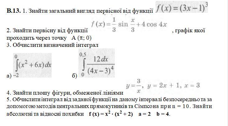 4 Задание. Знайти площу фігури, обмеженої лініями y=3/x, y=2x+1, x=3.