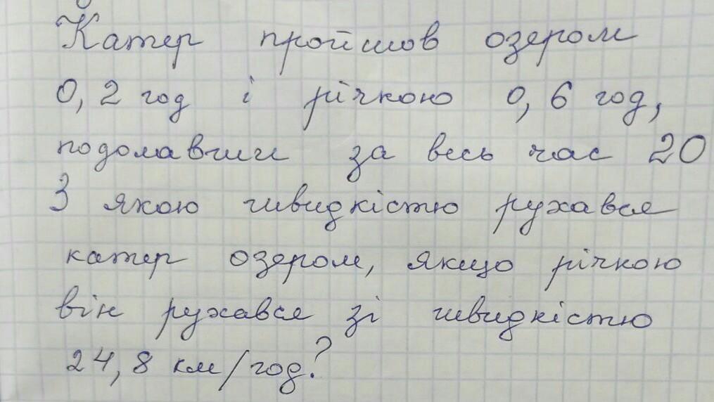 3) 5,12 : 0,2 = 25,6 (км/ч) - скорость катера по озеру