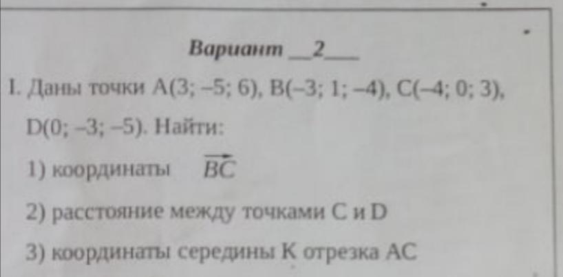 Координаты вектора BC = (-4 - (-3) ; 0 - 1 ; 3 - (-4))