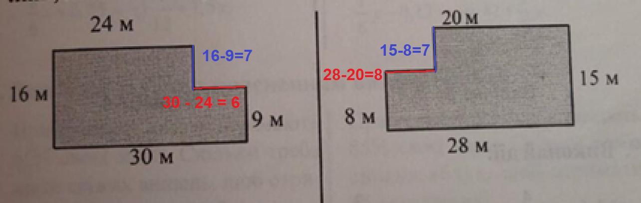 16 + 30 + 9 + 6 + 7 + 24 = 92 м – периметр первой фигуры