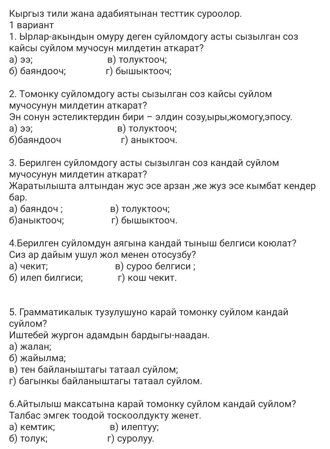 5)г багынкы байланышта таатал суйлом
