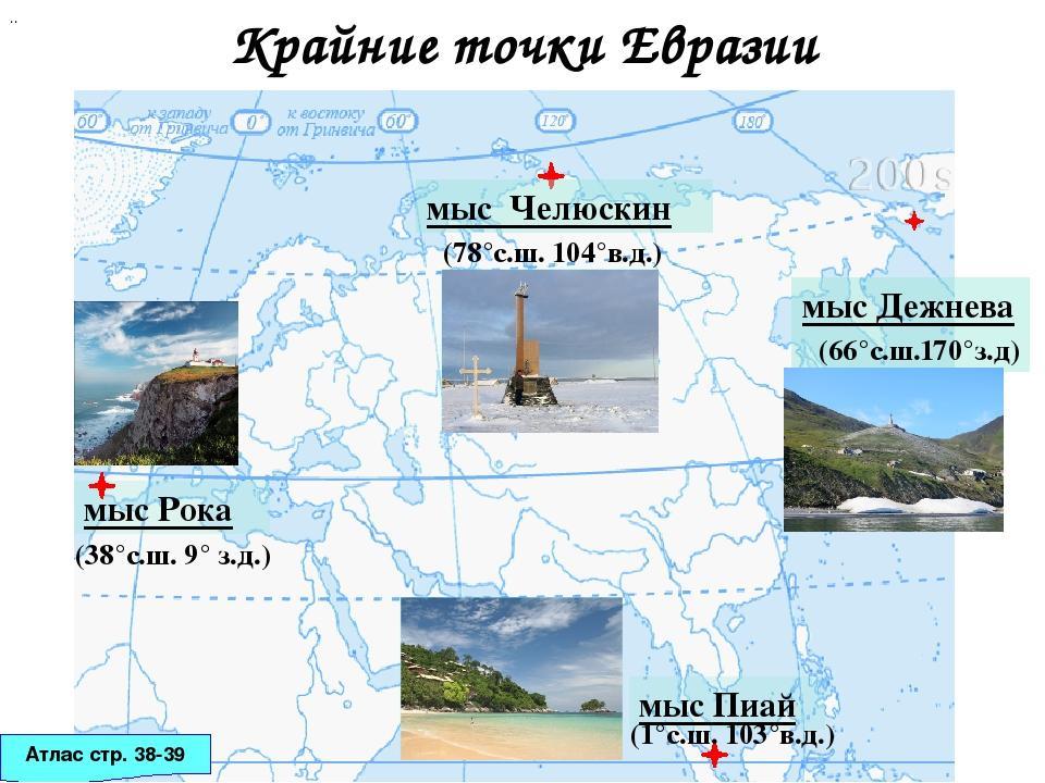 г) положение относительно других материков: относительно Австралии Евразия находится на северо-западе, относительно Африки на северо-востоке, относительно Северной Америки на востоке, относительно Южной Америки на севере и северо-востоке, относительно Антарктиды на севере.