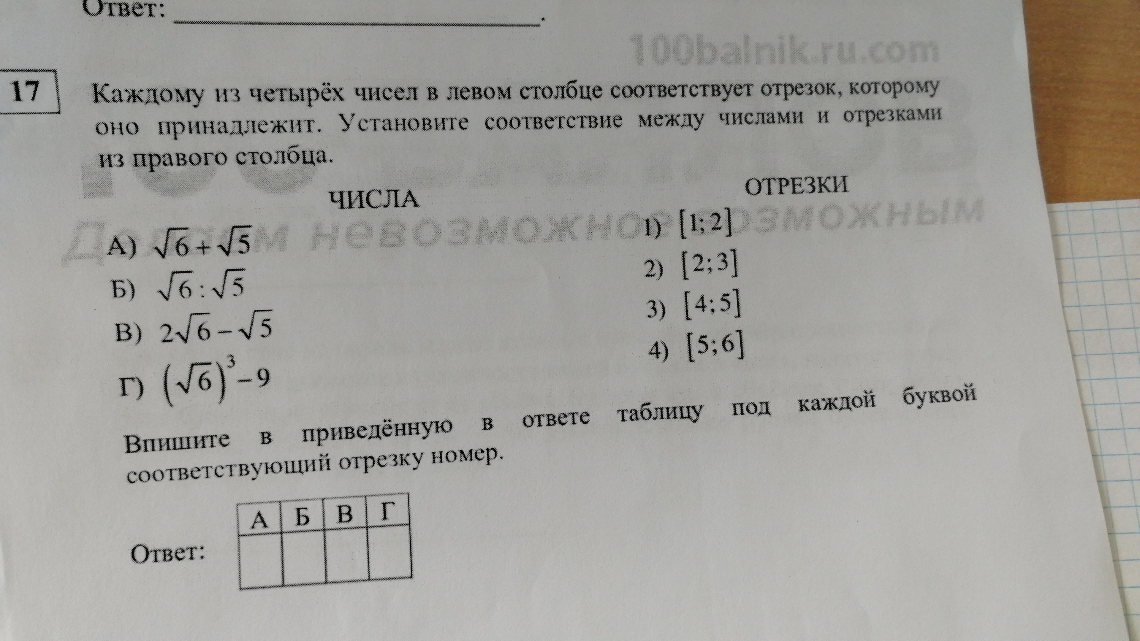 √5+√6≈4,68556 (я вывел 5 из под корня и 6 из под корня и сложил их) это приблизительный ответ, точного там нет