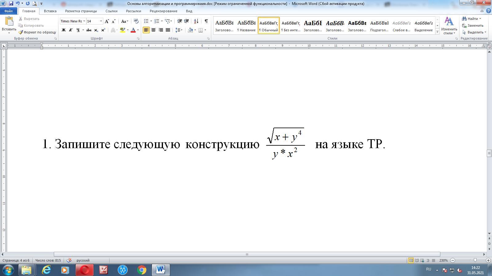 Запишите следующую конструкцию \sqrt{\frac{x+y^4}{y\cdot x^2}} на языке турбо паскаль