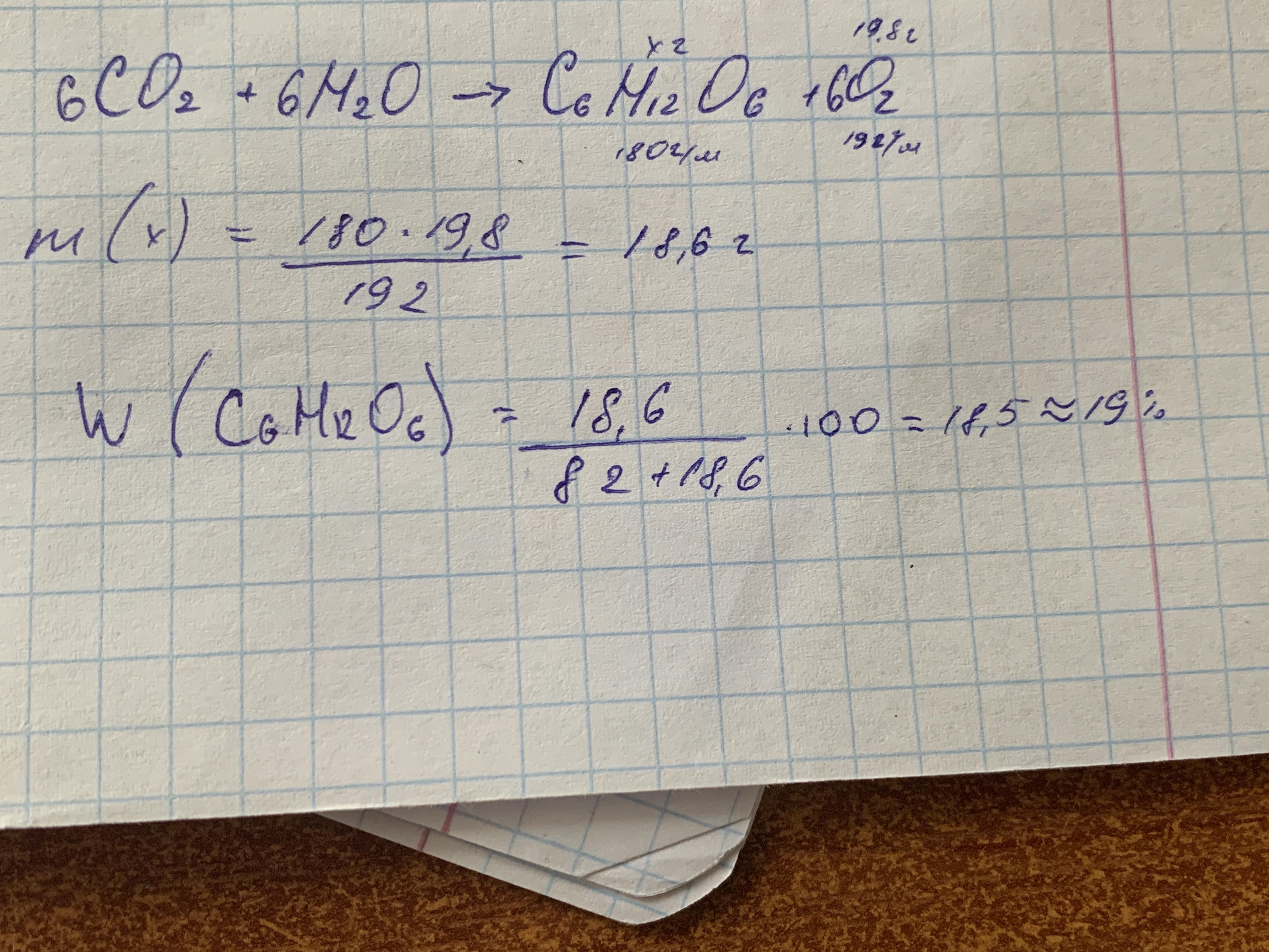 Д-12. У реакції фотосинтезу витратилися вуглекислий газ CO, масою 26,4 г та