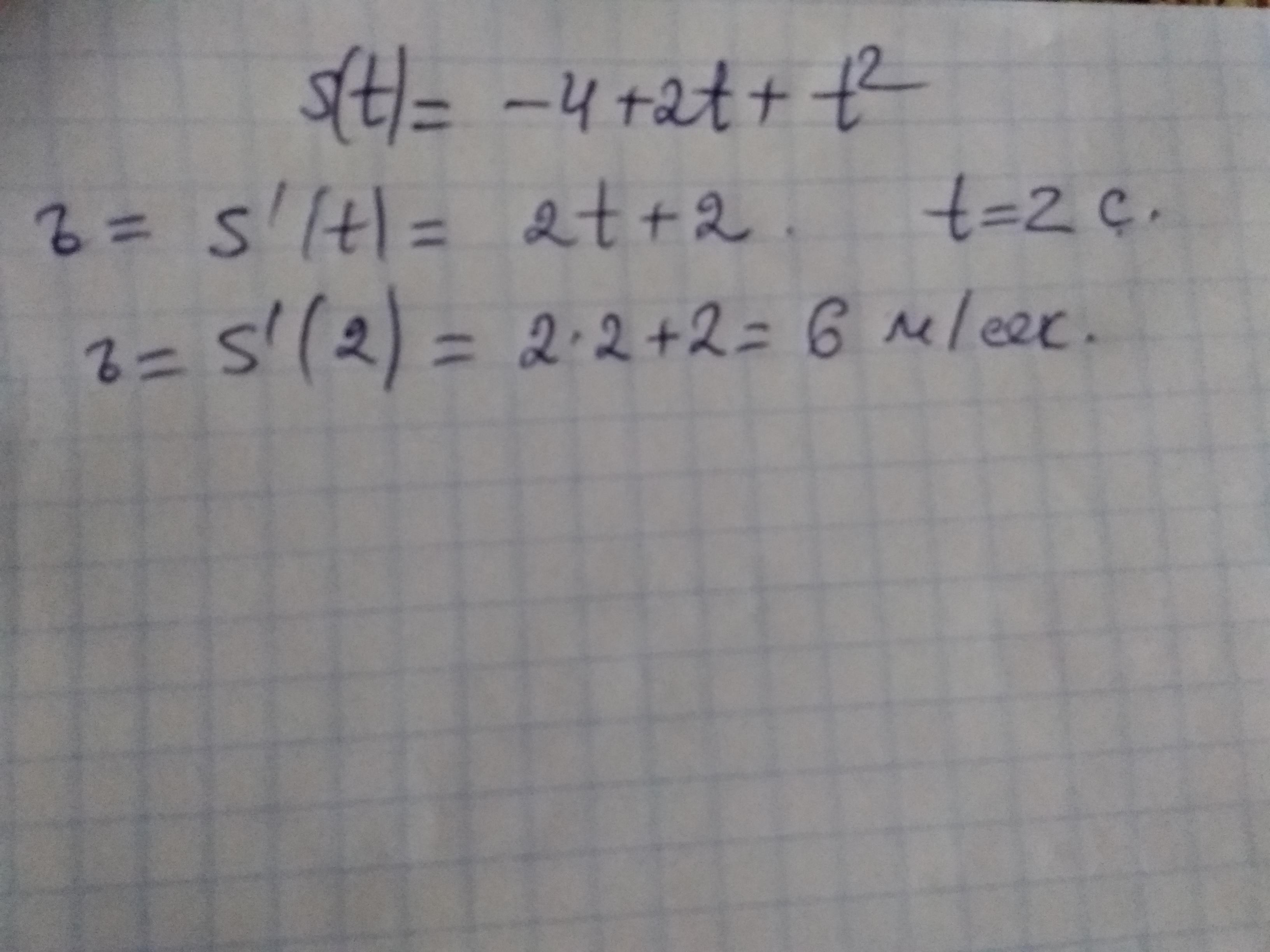 Тіло рухається прямолінійно за законом s(t)=-4 + 2t +t2 (ѕ вимірюєть-