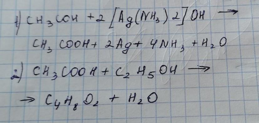 этаналь-----уксусная кислота------этиловый эфир уксусной кислоты