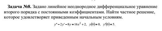 второго порядка с постоянными коэффициентами. Найти частное решение,