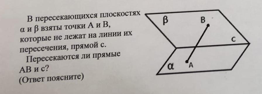 Прямая АВ пересекает плоскость β в точке В ∉с⇒АВ и с скрещиваются