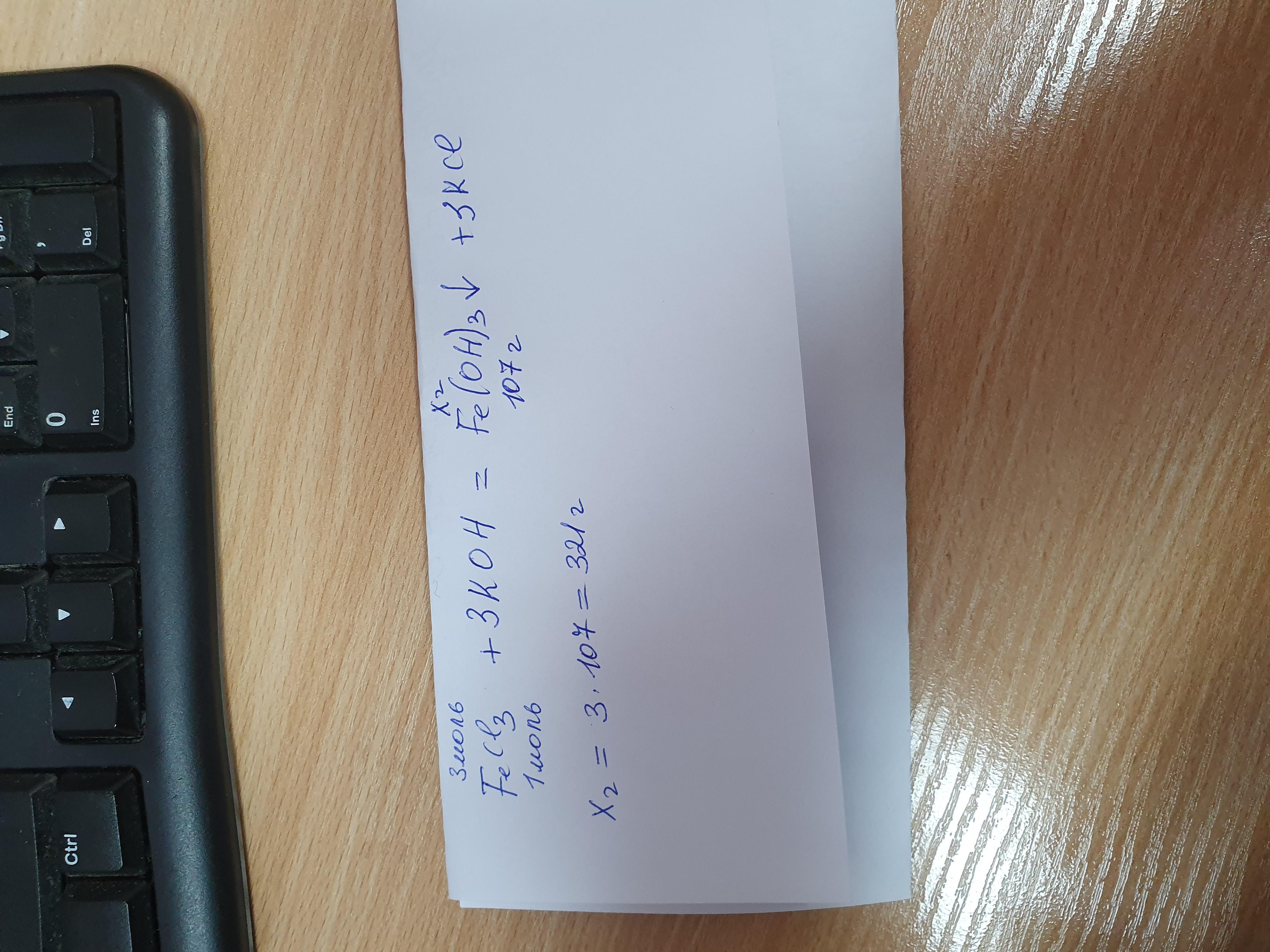 якщо на розчин хлориду феруму кількістю речовини 3 моль подіяти розчином гідроксиду калію та випадає осад масою а)321г,б)214г, в)2,14г, г)3,21г . вибрати правильну відповідь