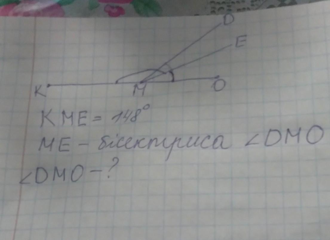 DME = ЕМО, так как МЕ биссектрисса DMO