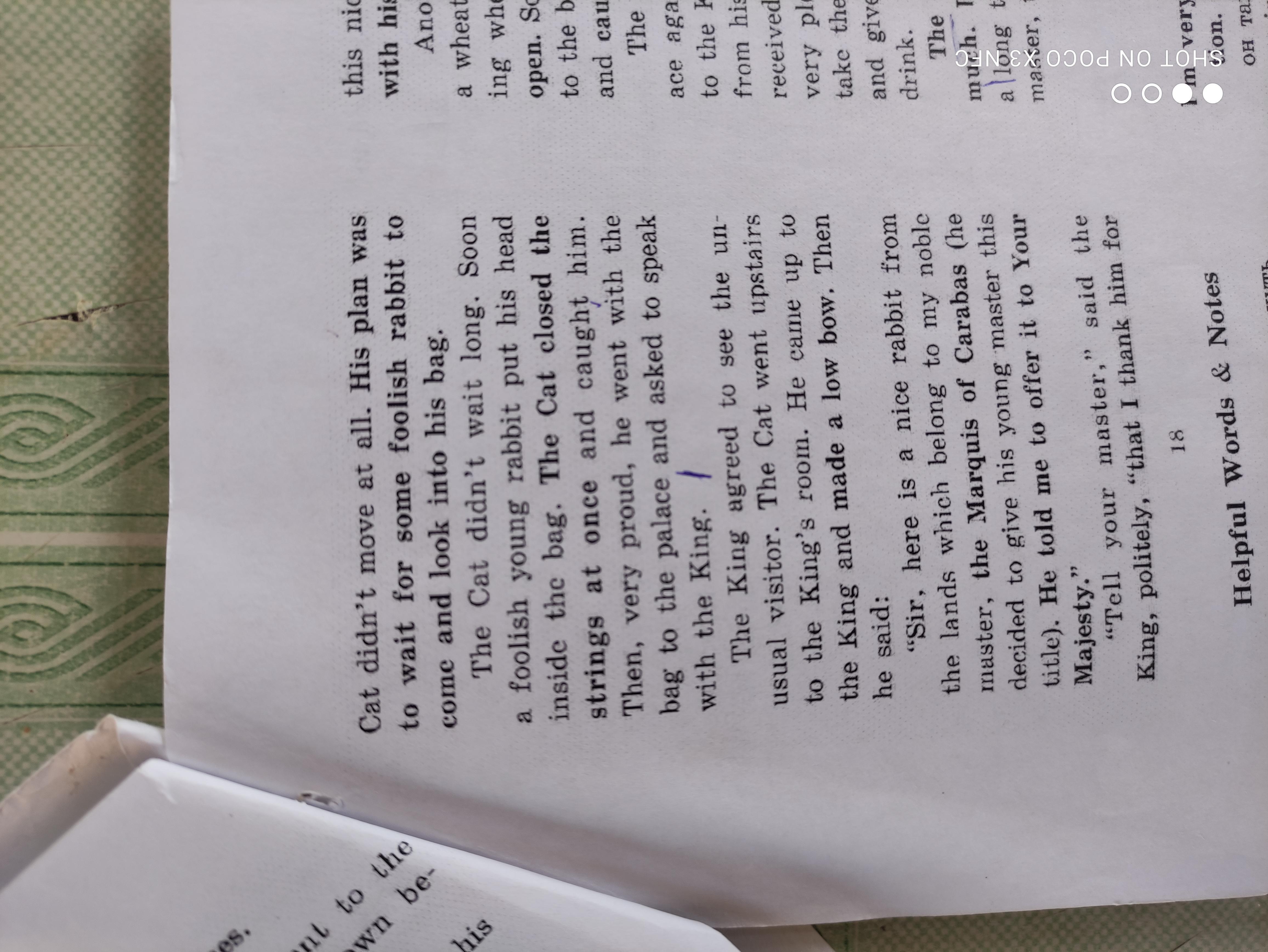 Король согласился увидеть необычного гостя. Кот поднялся наверх, в королевскую комнату. Он подошел к королю и низко поклонился. Затем он сказал:
