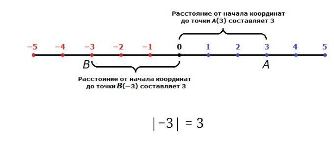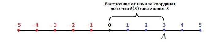 Мóдуль числá 3 — это расстояние от начала координат до точки А(3).