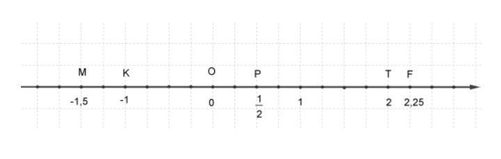 Говорят: «Точка P расположена слева от точки O». «Точка P расположена справа от точки K».Запишем координаты точек M, K, P, T, F.