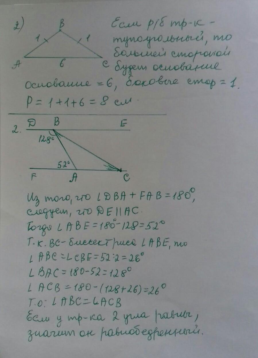 2) Две стороны тупоугольного равнобедренного треугольника равны 6 см и 1 дм. Найдите