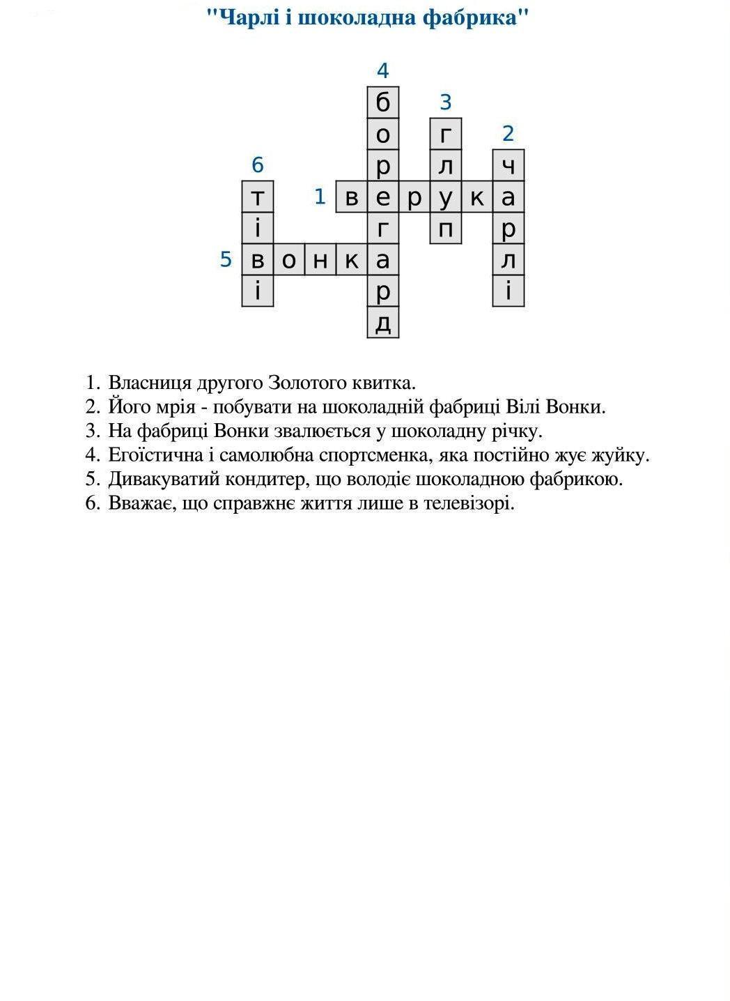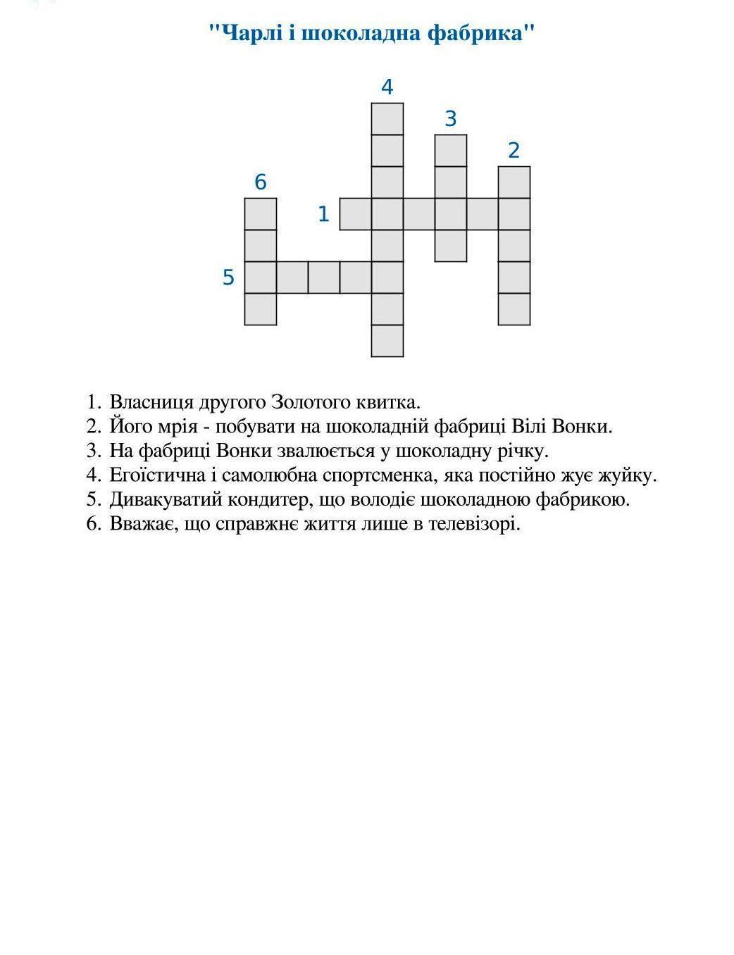 скласти кросворд і питання про любий твір (6 слів). 5 клас, будь ласка напишіть на українській мові