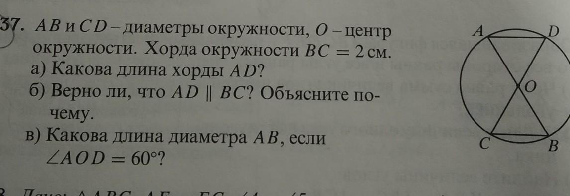 б) АД║ВС потому что ΔАОД=ΔСОВ стороны этих сторон если ∠СОВ=60° равны радиусу. И все углы равны ∠ОСВ=∠АДО, поэтому АД║СВ