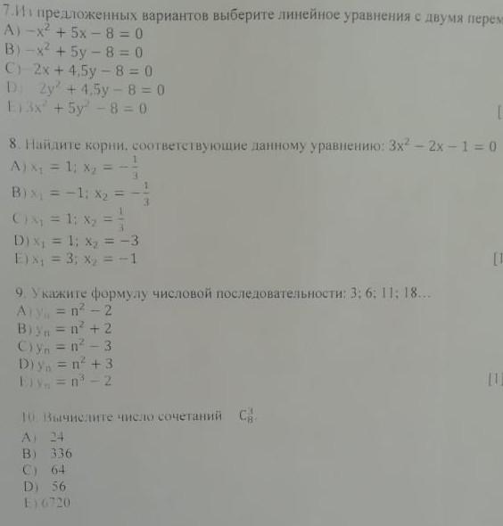 ответ B) yn=n²+2