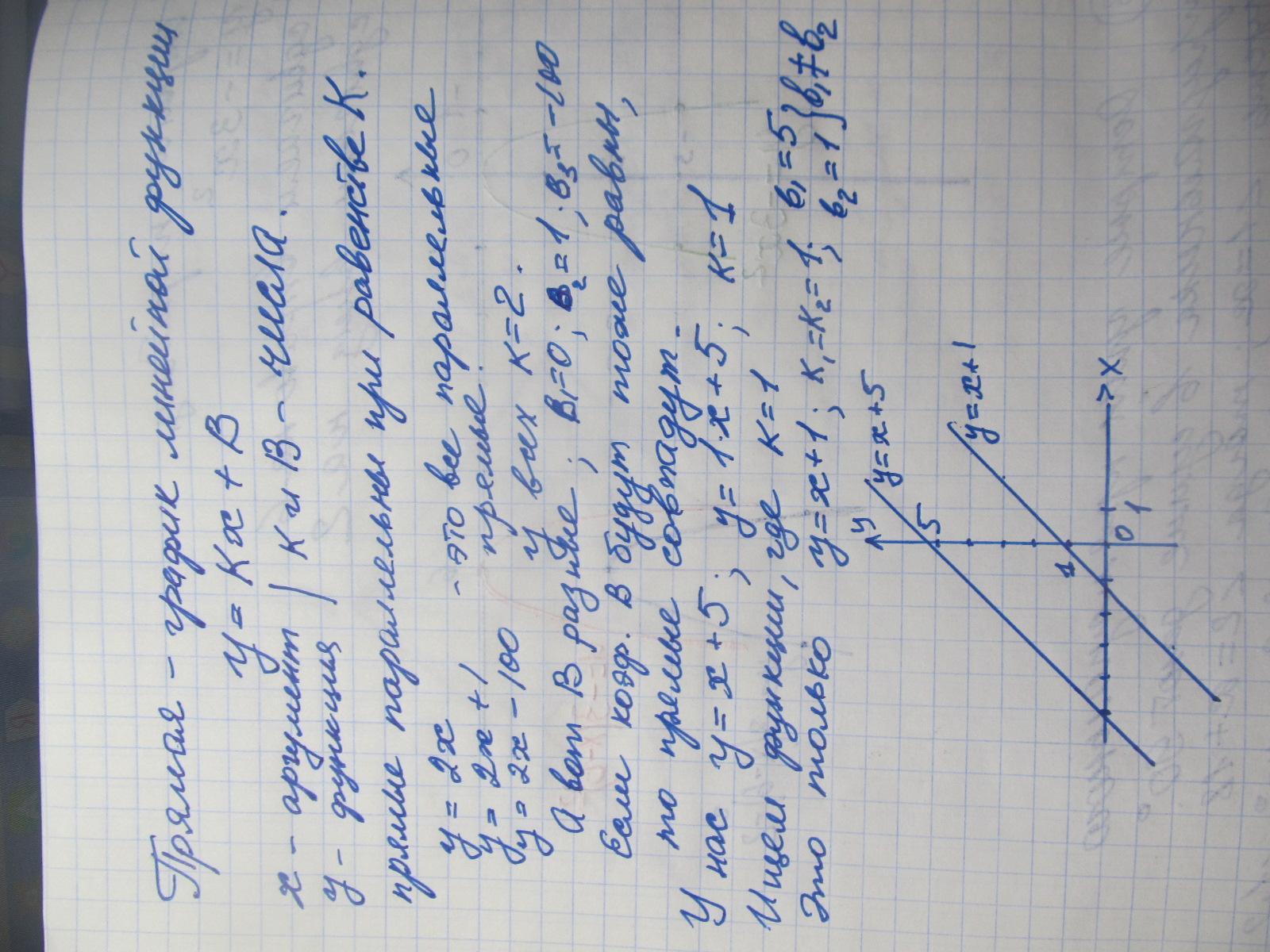 В) у=х+5 и у=х+1 параллельны. к1=к2=1.