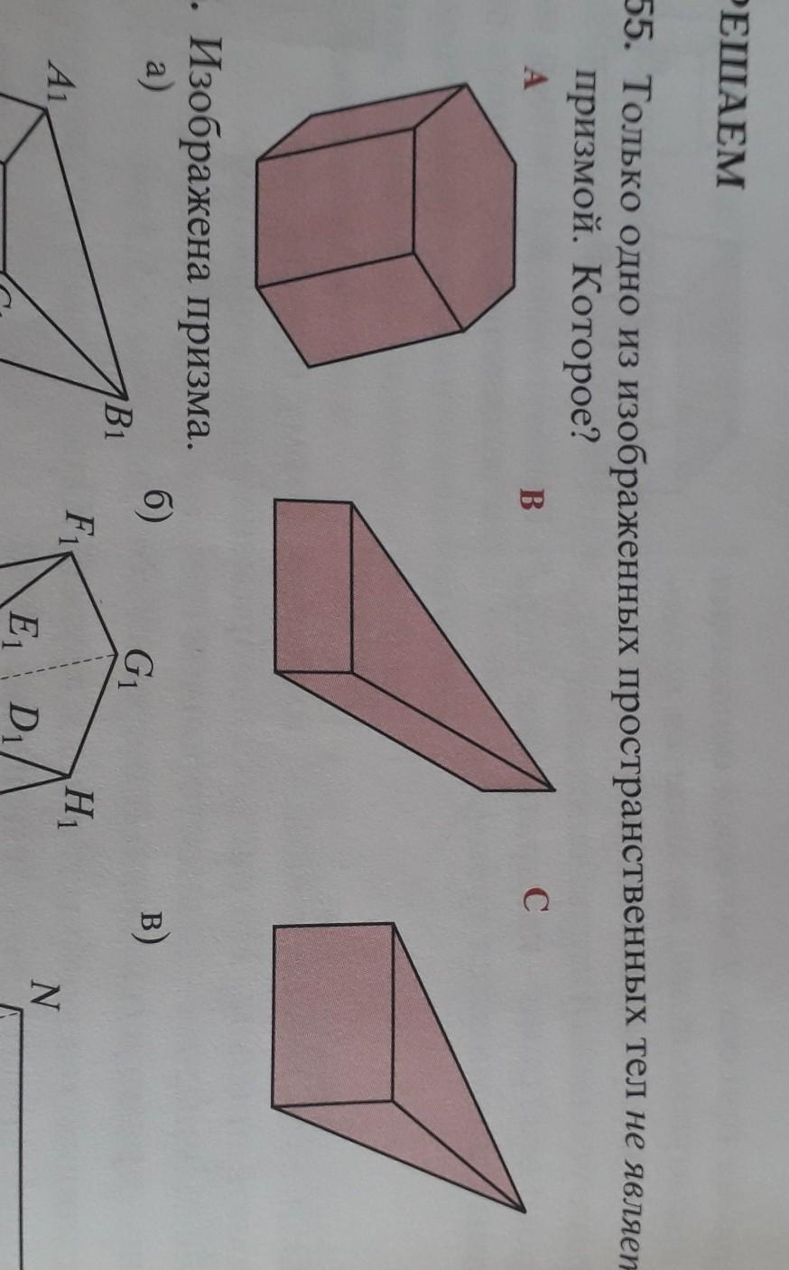 При́зма — многогранник, две грани которого являются конгруэнтными многоугольниками, лежащими в параллельных плоскостях, а остальные грани — параллелограммами, имеющими общие стороны с этими многоугольниками.