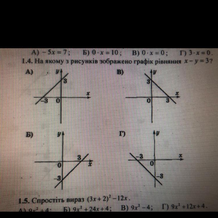 1.4. На якому з рисунків зображено графік рівняння x-y= 32