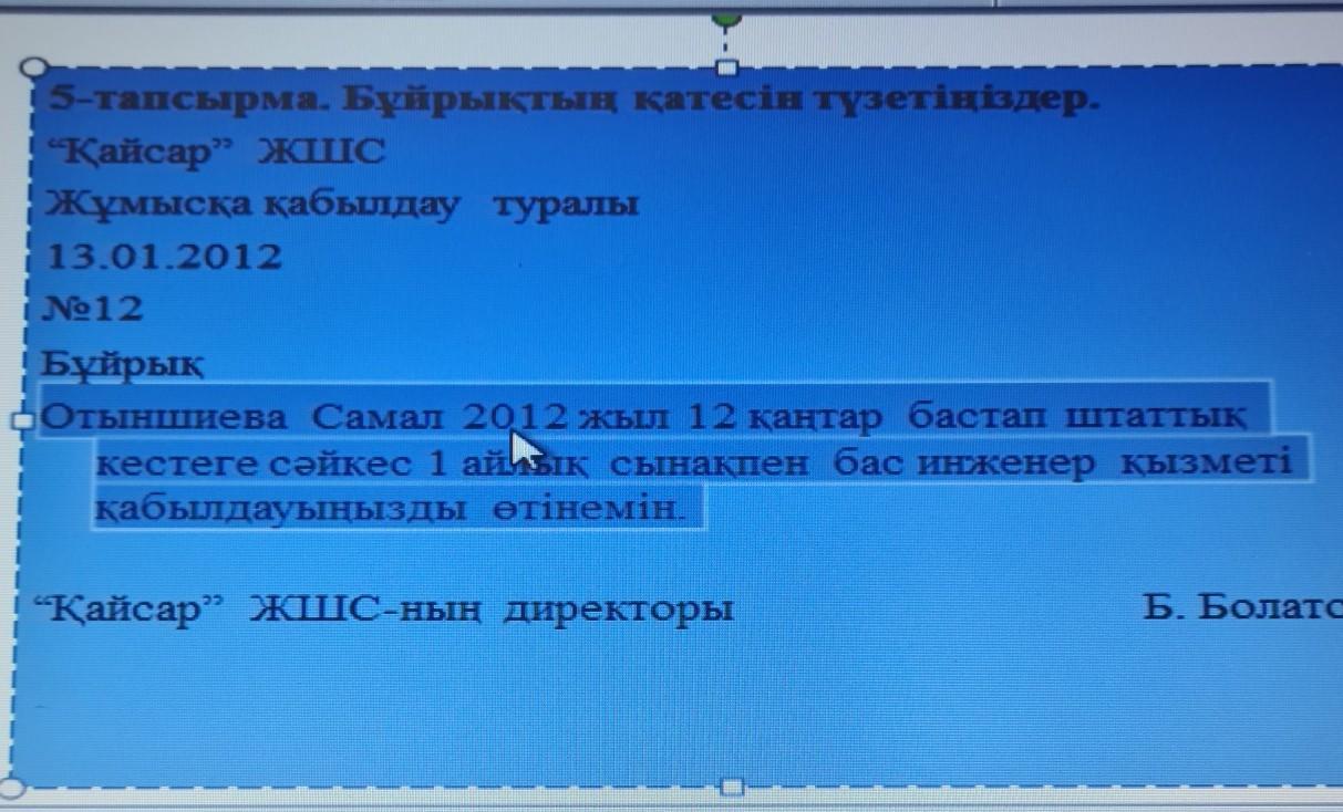 5-тапсырма. Бұйрықтың қатесін түзетіңіздер.