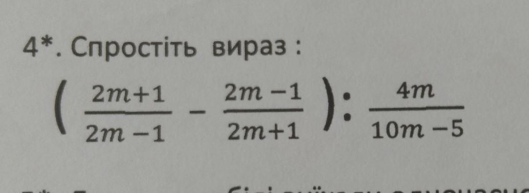 (2m+1)²-(2m-1)²:(2m-1)(2m+1)*(10m-5):4m (перемножила первые дроби; перевернула вторую дробь, теперь умножаем на нее, а не делим)