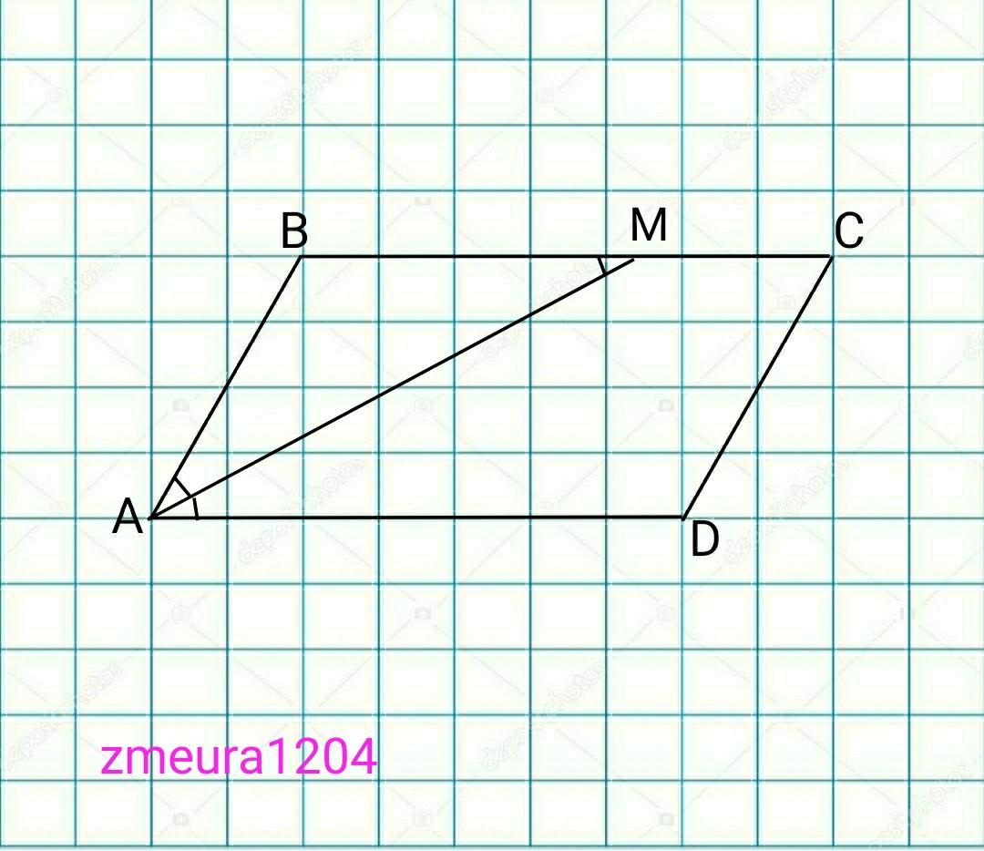 Периметр паралелограма АВСD дорівнює 32 см. Бісектриса кута А перетинає сторону ВС у точці М, ВМ =7 см, знайдіть у см довжину відрізку МС.