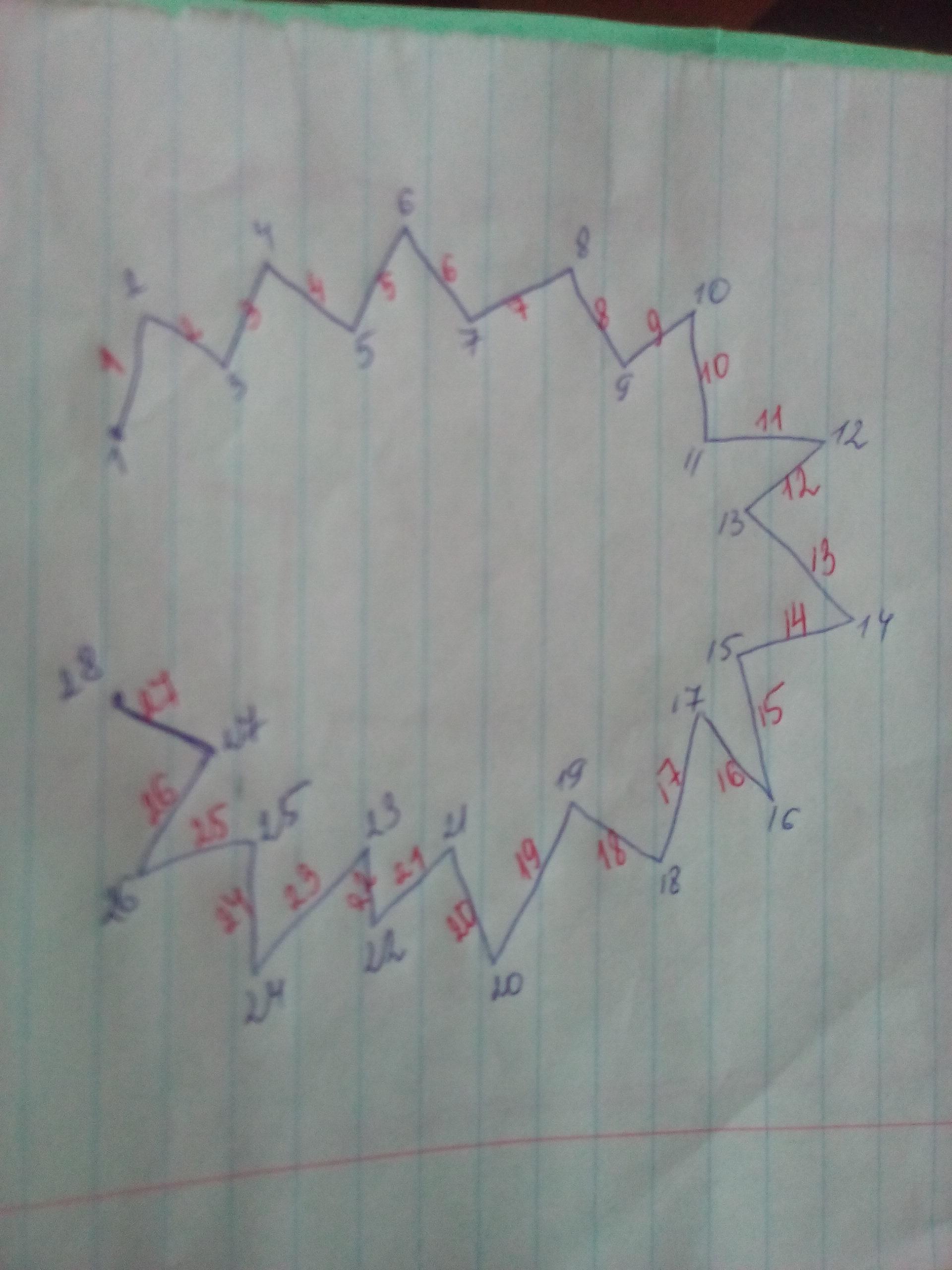 Как показано на примере ниже, у этой незамкнутой ломаной линии 4 вершины и 3 звена. В нашем случае будет аналогично на одно звено меньше, чем количество вершин.
