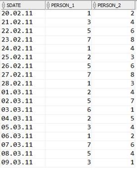 Также по возможности помогите с Для каждого из человек найдите минимальное и максимальное время между дежурствами