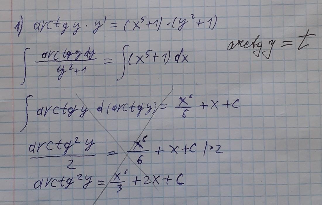 Помогите пажалуйста нужно перерешать дифференциальное уравнение с общим решением начиная с 3й строчки с подстановкой arctg y=t (в этом направление).сделать решение проще чем на фото.