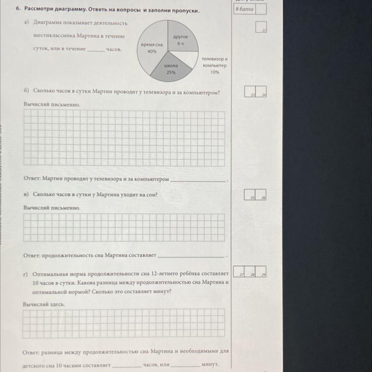 Разница между нормой сна и сном Мартина: 10 часов - 9 часов 36 минут= 24 минуты
