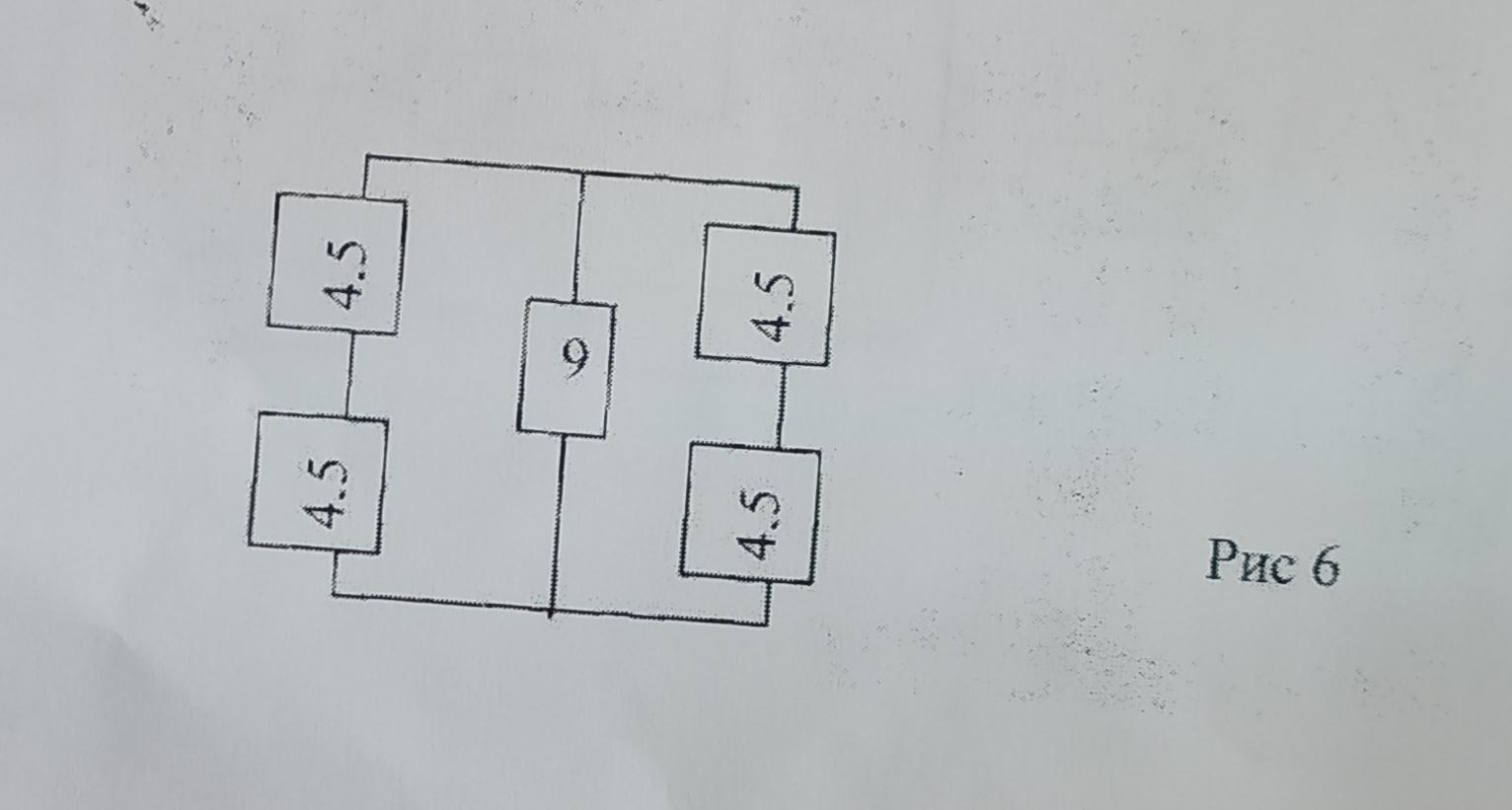 смешанное соединение резисторов постоянного тока R1-4,5 R2-4,5 R3-9 R4-4,5 R5-4,5 Uоб-18В R6-?