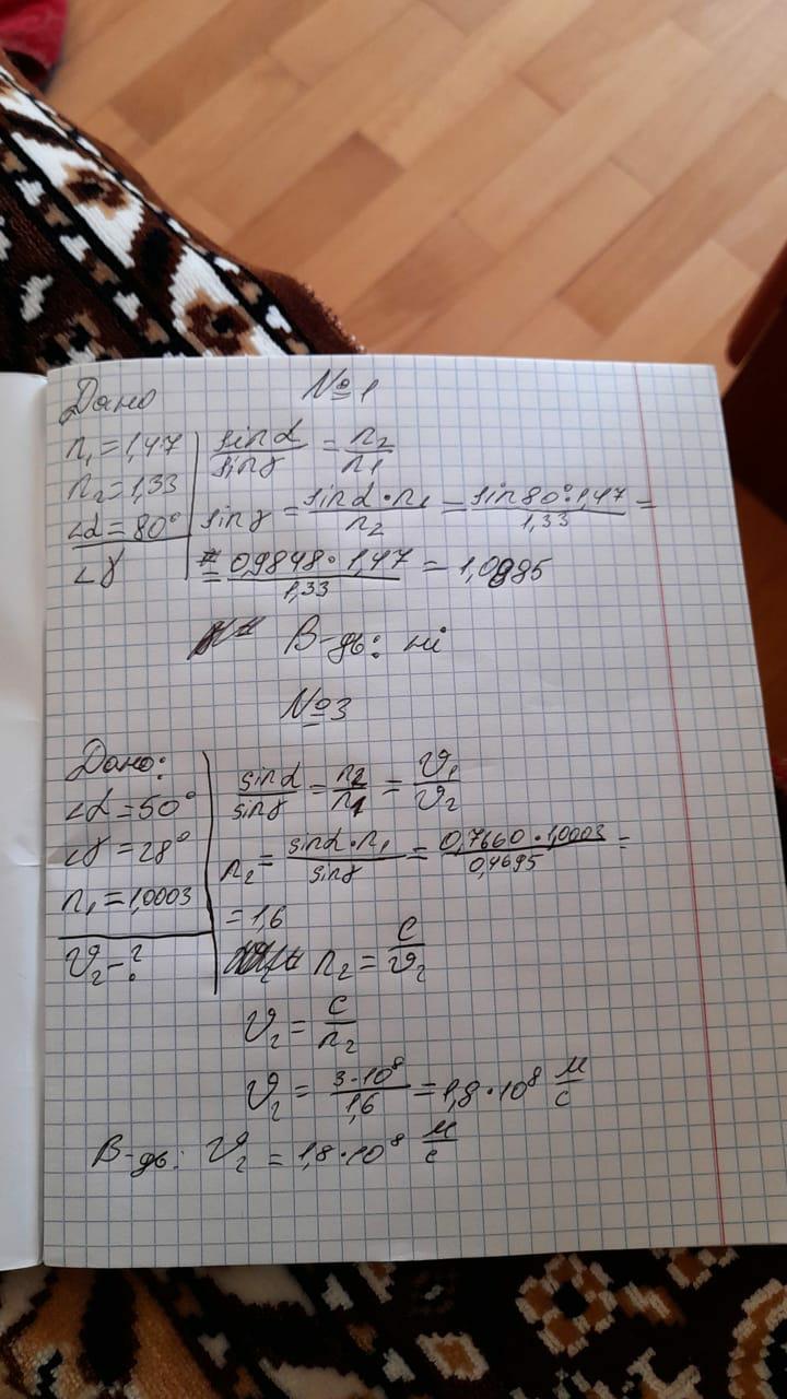 3. Визначити швидкість поширення світла в речовині, якщо відомо, що при переході в дане середовище із повітря при кутi падіння світлового променя в 50° кут заломлення склав 28°
