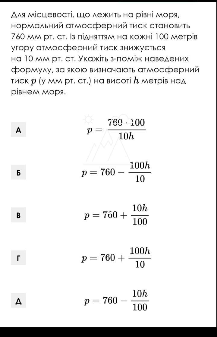 Д) p = 760 - 10h/100