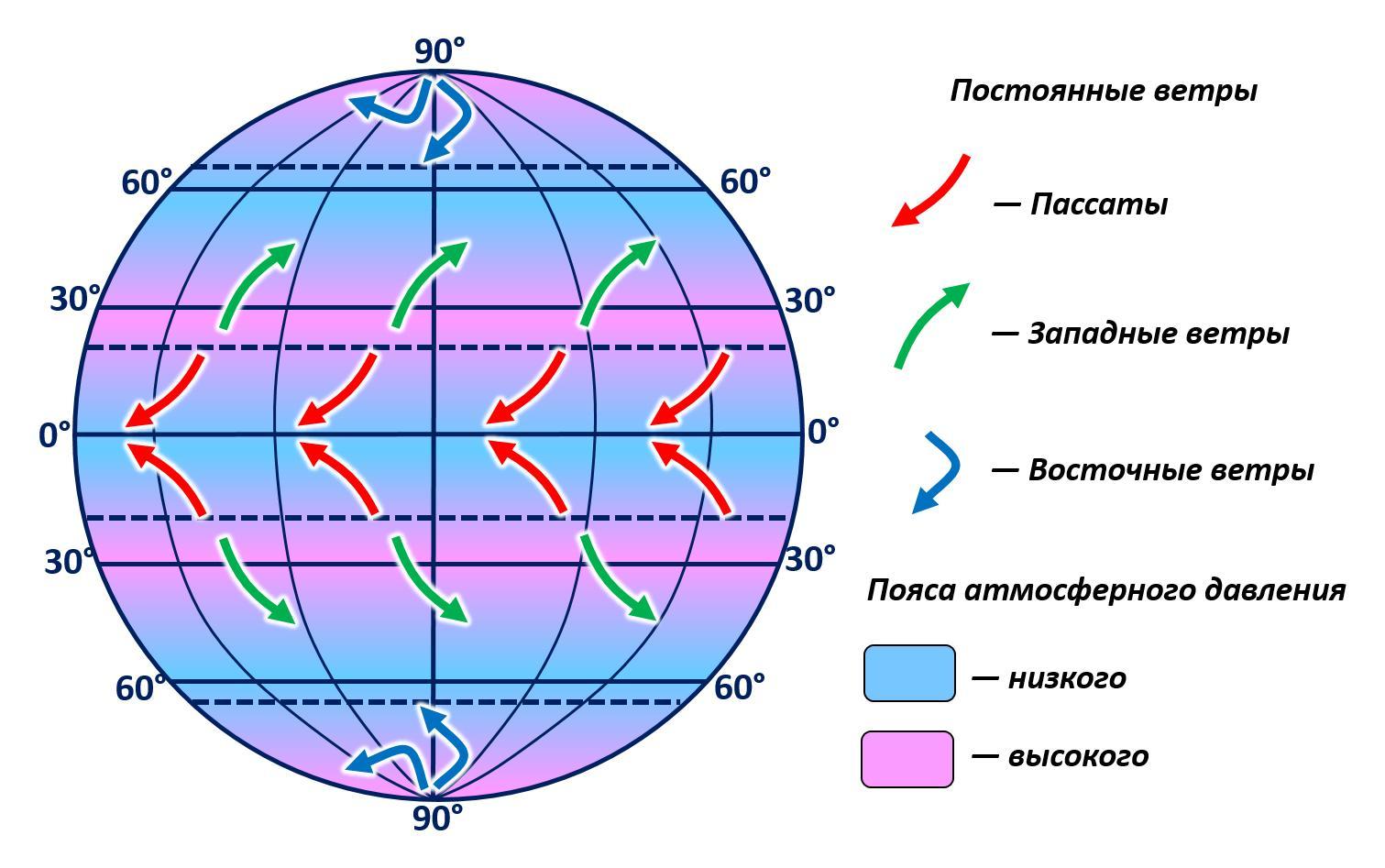 Исходя из карты постоянных ветров, можно сделать вывод, что на рисунке изображены ветры под названием пассаты.