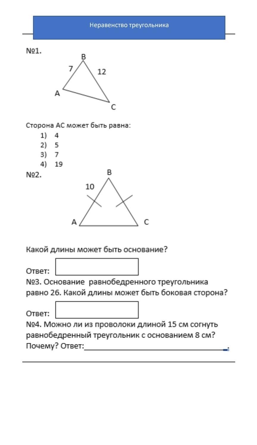 #4 - нет, так основание 8, тогда сумма двух других сторон будет 7 см, а они должны быть больше или равны 8