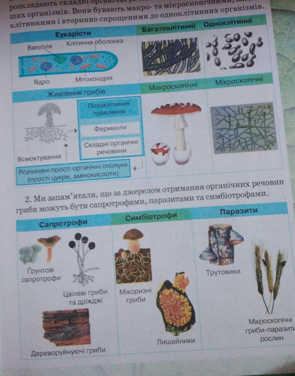 розгляньте запропоновані вчителем плодові тіла, муляжі та зображення найпоширеніших грибів своєї місцевості