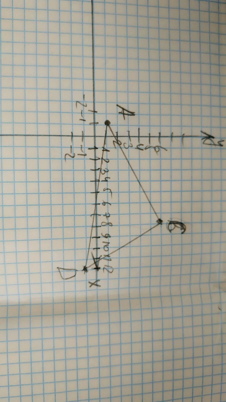 построй в тетради координатную плоскость за единичный отрезок возьми 1 клетку отметь положительное направление осей кординат стрелочками и построй по координатам треуголник ACD