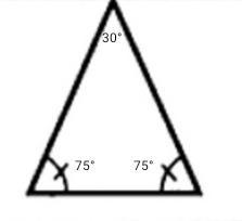 2) По теореме о сумме углов треугольника 180° - (75° + 75°) = 30° - величина третьего угла.