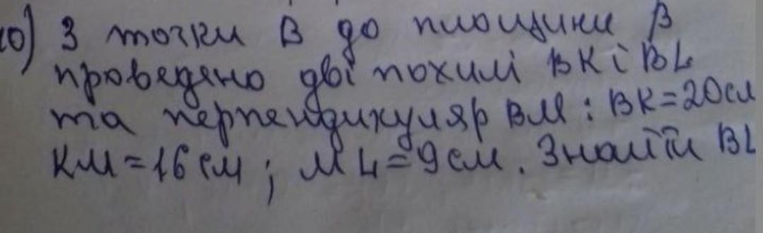 Из прямоугольного треугольника BML по теореме Пифагора :