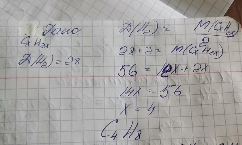 Визначте молекулярну формулу ненасиченого вуглеводню класу алкенів, густина пари якого за воднем дорівнює 28.