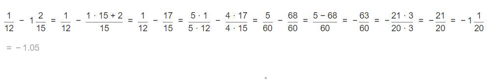 1/12- 17/15= 6-68/60= -62/60= -1 2/60