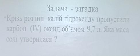 задача загадка: Крізь розчін калію гідроксиду пропустили карбон (5) оксид об'ємом 9,7л. Яка масса солі утворилася?